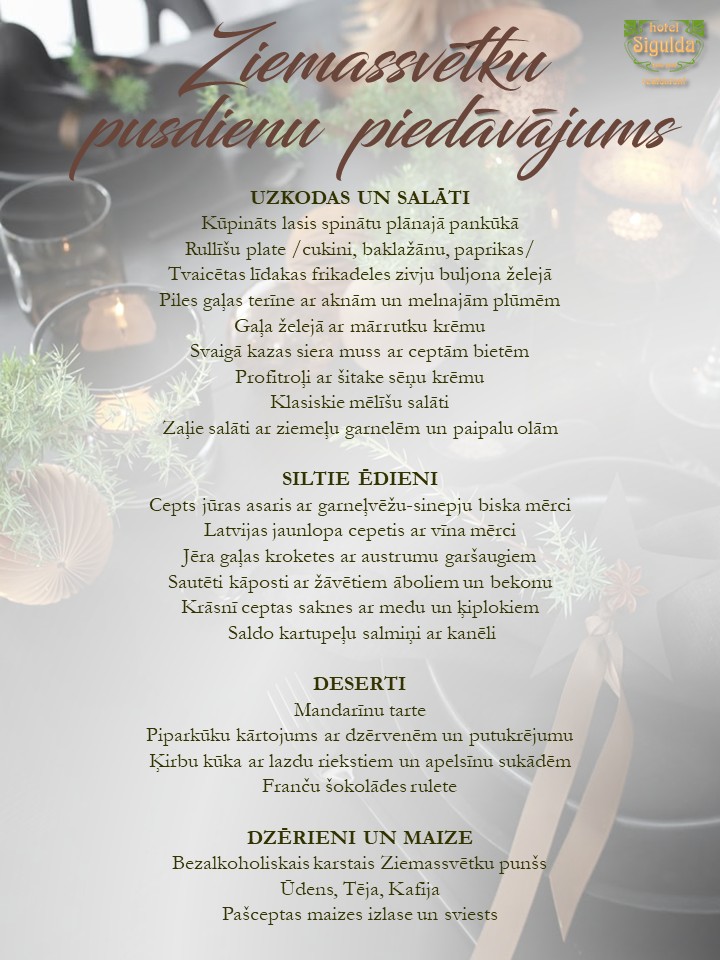 Aicinām Jūs baudīt svētku noskaņu mūsu restorānā 26. decembrī, kur esam sagatavojuši īpašu pusdienu piedāvājumu no 13:00-16:00