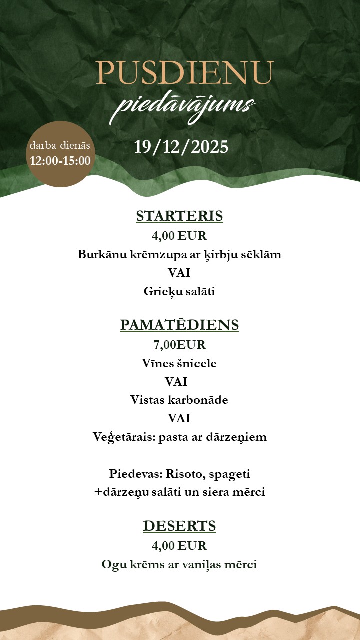 Ресторан гостиницы с красивой летней террасой предлагает изысканные блюда от шеф-повара Айгара Шавея, в которых совмещена классика европейской кухни и вкус современной Латвии. Летом вы можете насладиться освежающим бокалом пива на террасе ресторана с видом на парк, а зимой — почувствовать атмосферу исторического здания 19-го века.